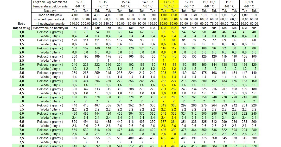 Peklowanie Mięsa Tabela Peklowania Na Mokro
